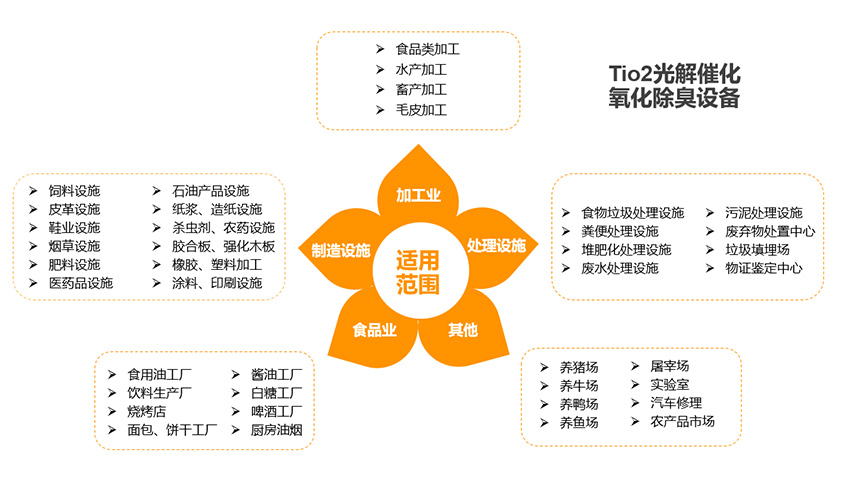 1、高效除異味(惡臭):能高效去除揮發性有機物(VOC)、無機物、硫化氫、氨氣、硫醇類等主要污染物及各種惡臭味。